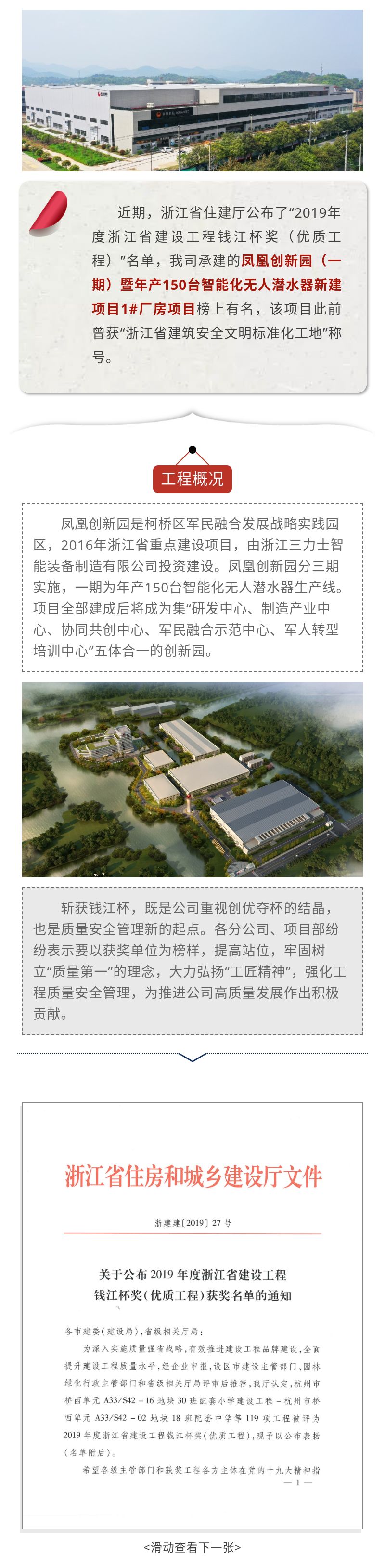喜報??!我司鳳凰創(chuàng)新園1#廠房項目喜獲錢江杯