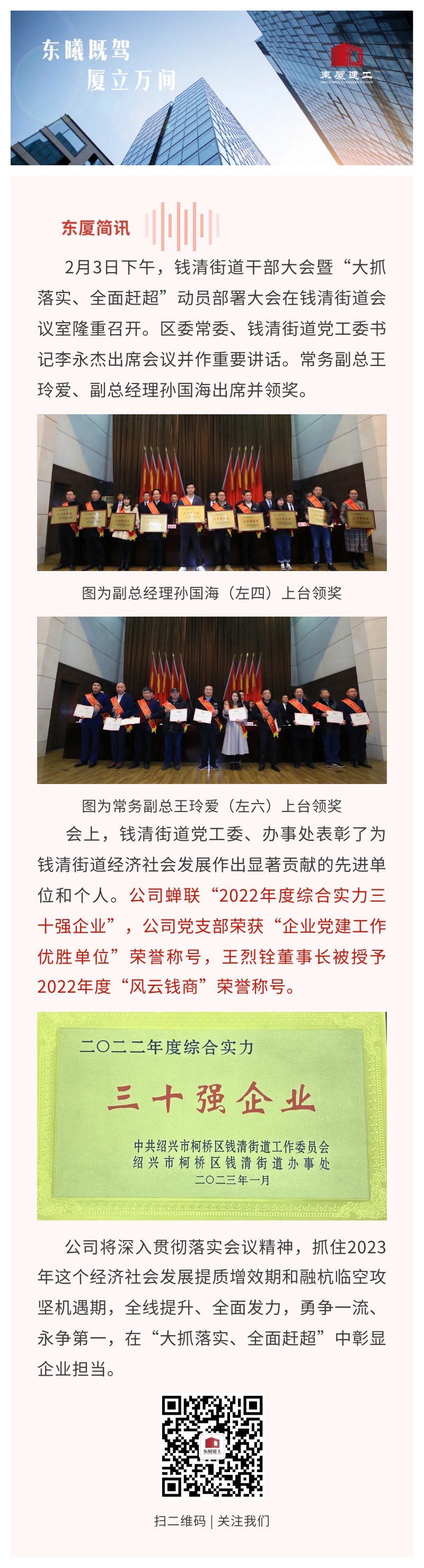 真抓實干 奮勇爭先 | 公司蟬聯(lián)錢清街道綜合實力三十強企業(yè)榮譽稱號
