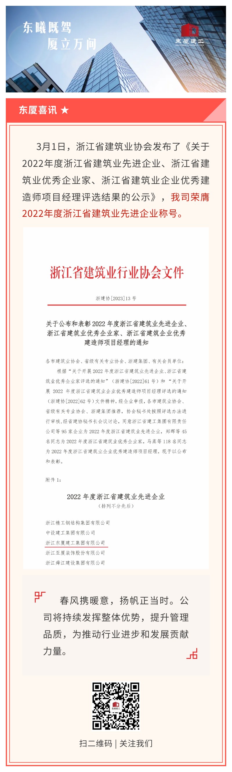 喜訊!公司榮膺浙江省建筑業(yè)先進(jìn)企業(yè)的稱號(hào)