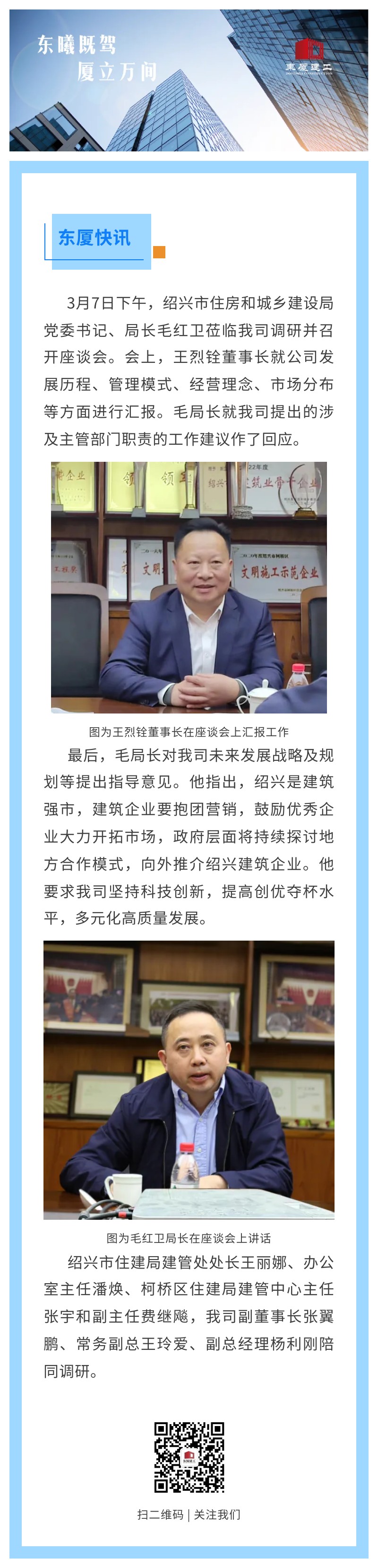 【東廈快訊】紹興市住建局毛紅衛(wèi)局長(zhǎng)蒞臨我司調(diào)研指導(dǎo)