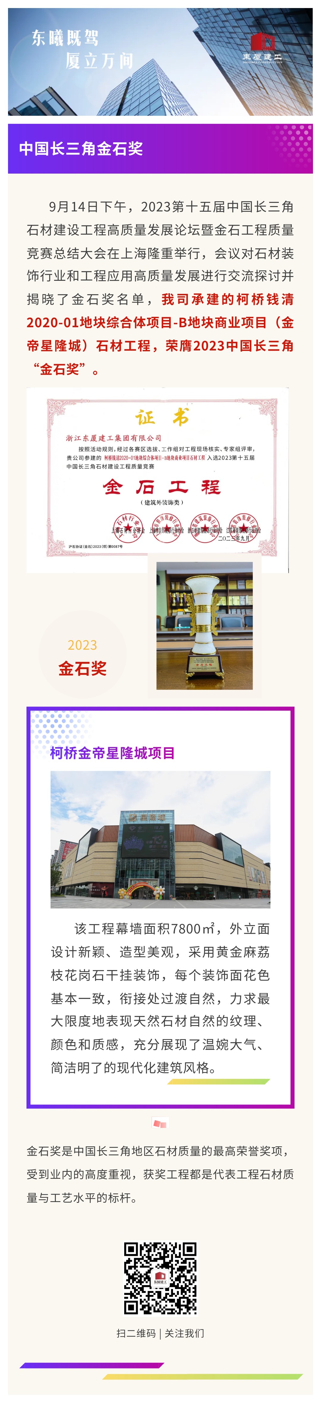 【東廈榮譽】我司承建的金帝星隆城項目榮膺2023中國長三角“金石獎”