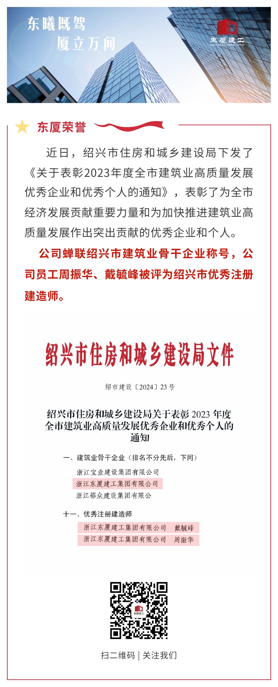 公司蟬聯(lián)紹興市建筑業(yè)骨干企業(yè)稱號(hào)