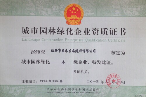 紹興市東禾生態(tài)建設(shè)有限公司獲得城市園林綠化三級(jí)資質(zhì) |
