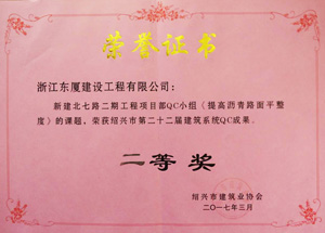| 2017年3月1日,紹興市建筑系統(tǒng)第二十二屆QC活動成果發(fā)布會于紹興市稽山賓館舉行。在眾多發(fā)布的QC小組成果中,我司中銀國際大廈項目部QC小組成果《探討提高止水后澆帶施工質量》榮獲紹興市建筑系統(tǒng)QC成果一等獎,新建北七路二期工程項目部QC小組成果《提高瀝青路面平整度》獲得二等獎。 近年來,我司積極鼓勵項目部針對工程施工過程中的難點、重點及存在的問題進行研究、探討,發(fā)揚創(chuàng)新精神,大力開展QC小組活動。本次QC小組成果取得的成績也正是給予所有的項目部開展QC小組活動一個好的例子、榜樣。 百尺竿頭,更進一步,借此次QC成果取得優(yōu)異成績的契機,我司將創(chuàng)造更為濃厚的科技創(chuàng)新氛圍,積極開展科技創(chuàng)新活動,力爭取得更多、更好、更全面的科技成果!