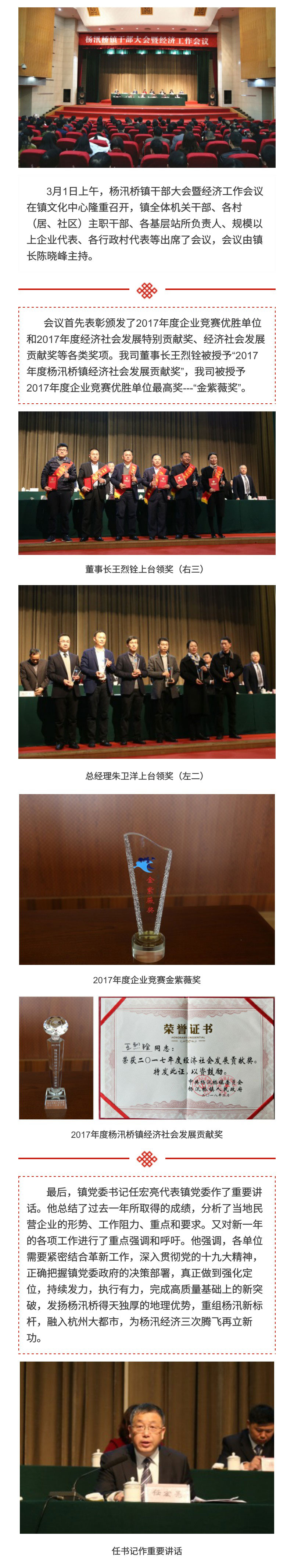 我司再次獲得楊汛橋鎮(zhèn)“金紫薇獎(jiǎng)”,公司董事長王烈銓榮獲楊汛橋鎮(zhèn)經(jīng)濟(jì)社會發(fā)展貢獻(xiàn)獎(jiǎng)