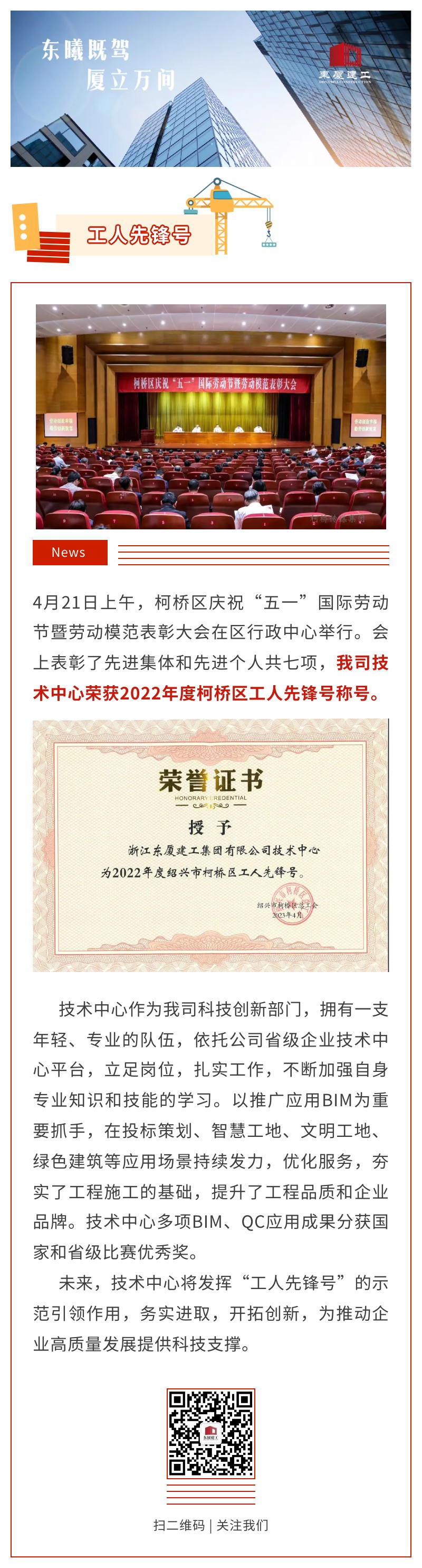 喜訊!我司技術(shù)中心榮獲柯橋區(qū)工人先鋒號稱號